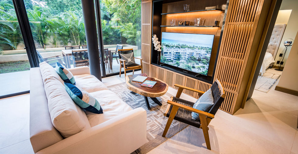 Spanning a generous 3668 Sq. Ft. open-concept layout, the condominium features an expansive garden terrace with private pool, floor-to-ceiling windows that fill the interiors with natural light, and refined finishes that highlight modern Caribbean luxury. Each bedroom is designed as a private retreat with en-suite baths.